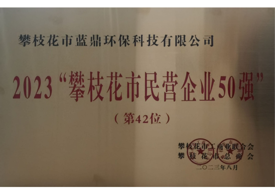 2023年10月26日,攀蓝鼎正式收到2023“攀枝花市民营企业50强”荣誉牌。