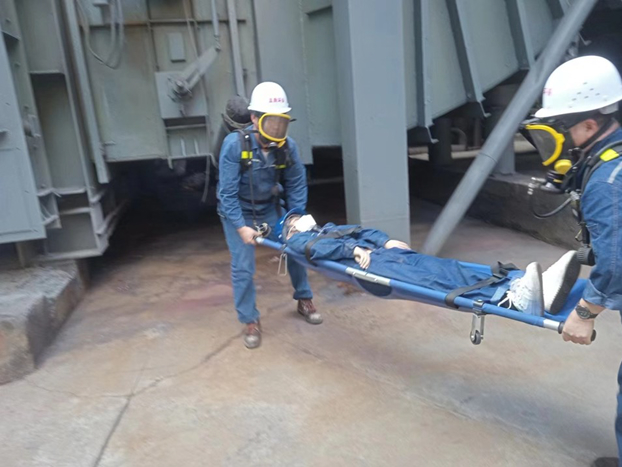 经过检修对漏点修补完成,用报警仪对漏点进行检测无泄漏后,经过领导确认后通知烧结恢复正常生产。最后,生产部游部长对本次演练进行了总结点评。