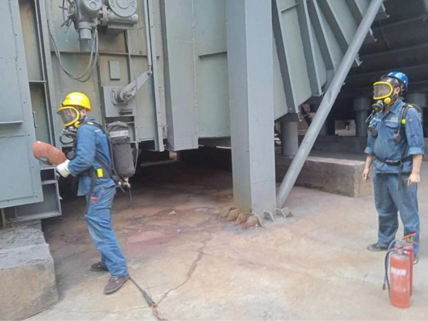 为防止脱硫系统烟道漏烟后对人及环境造成伤害,完善应急管理机制,迅速有效地控制和处置可能发生的伤害事故,维护正常的生产工作秩序,攀蓝鼎组织脱硫系统开展烟气泄漏应急演练。