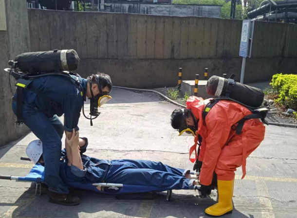 在演练过程中,应急队伍成员各司其职,有序展开救援行动。救援人员迅速穿戴好防护装备,进入事故区域对中毒员工进行紧急救援,并将其送往医院进一步治疗。同时,检修人员也迅速对泄漏点进行排查和修复,防止事故进一步扩大。