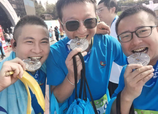 赛后,“跑团”的成员们纷纷交流比赛经验,为自己的坚持不懈点赞,也收获了见证自己拼搏的奖牌。