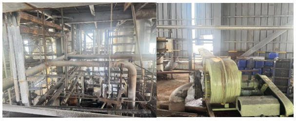 威远泽天蒸发浓缩离心机排气管道长期出现脱落漏水情况,现场设备、楼层腐蚀严重,定置保持困难;长时间腐蚀楼层有垮塌等安全风险,集体公司各级领导也多次提出做好现场环境改善要求。为彻底解决这一痛点,威远泽天外出考察学习后,借鉴行业单位蒸发浓缩现场设备技改情况,对蒸发浓缩三台离心机排气管道由PVC材质技改成不锈钢管道,蒸发浓缩三楼增加一台风机抽排水蒸汽。