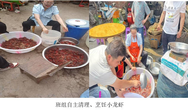 经过一番激烈的角逐,收获颇丰,捕获了大量的小龙虾。最后由班组专业厨师烹饪成美味佳肴。午餐时分,餐桌上摆满了香辣小龙虾、蒜蓉小龙虾等各种口味的美食,同事们一边品尝着自己的劳动成果,一边交流着活动中的趣事,脸上洋溢着满足的笑容。
