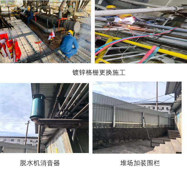 此次援助任务涵盖脱水机系统技改、废水三效管道换材、设备安全隐患整改等多项消缺任务以及环保整改项目。威远泽天检修人员抵达后,第一时间与攀蓝鼎生产部展开紧密沟通协调,依据现场实际情况制定详细工作计划,迅速投入到紧张的工作中。他们率先完成了脱水二号真空泵出口加装消音器工作,有效降低了设备运行噪音,改善了工作环境;对堆场外围加装围挡,规范物料堆放,减少扬尘污染;完成三效循环泵出口软连接更换,保障废水处理系统稳定运行;为二烧脱硝增压风机更换坚固耐用的风机雨棚,提升设备防雨防潮性能;在二烧脱硫地坑处加装围挡,消除安全隐患。在脱水平台更换镀锌格栅,进一步提升平台安全性与耐用性;目前二烧烟道更换变径也在稳步进行中。