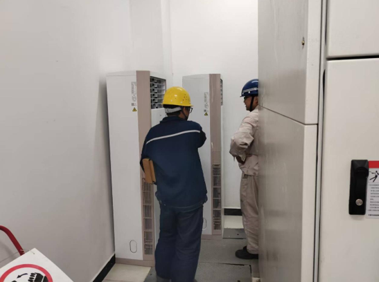 随后,李主任前往变频器室,对新安装的5台空调进行检查并表示认可,认为这一改进有效改善了变频器的运行环境,有助于延长设备寿命并提高运行效率。他还深入检查了电缆桥架孔洞的堵塞情况,对西昌蓝鼎在电缆管理方面的规范操作表示肯定。