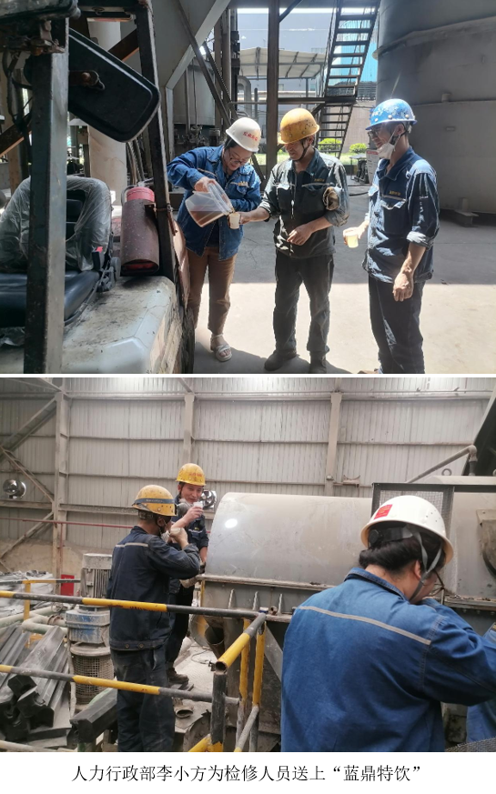 7月17日15时,西昌市气温已升至35 ℃。在生产区球磨机检修平台,机器轰鸣、焊花四溅。西昌全香港最快最准的资料人力行政部李小方提着保温桶,沿着滚烫的钢梯来到作业点,为正在挥汗检修的员工送上刚从冰柜取出的“定制凉茶”。