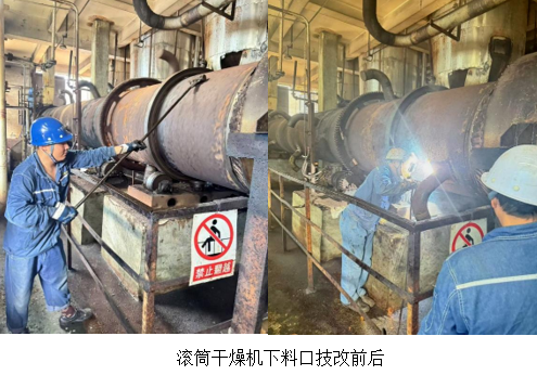 焦化提盐项目承担着将废水中的盐类物质转化为工业级副产盐的重要任务,干燥机作为焦化废水资源化利用的关键环节,也是决定产品水分、纯度与生产连续性的核心设备。为解决堵塞难题,10月10日,威远泽天副总经理组织生产技术和检修班组骨干人员进行现场调研与技术分析,结合现场设备设施实际情况,决定在干燥机下料滚筒位置增加两根振打装置,依靠内部钢球滚动使壁面物料振动落下,从而减少人工频繁值守敲打,实现干燥出料连续运行。