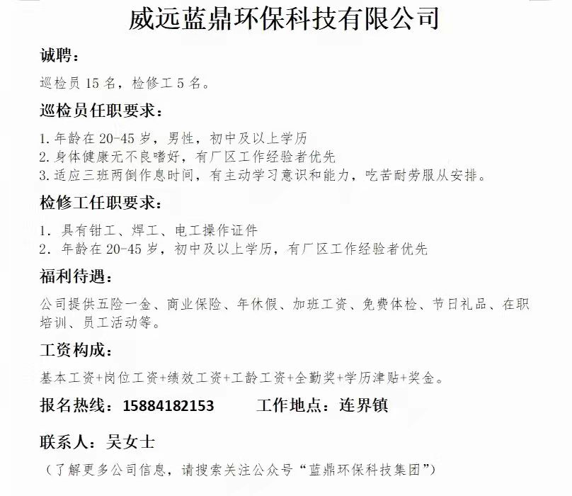 因公司在山西业务需要,现招聘以下岗位: ●岗位名称:操作工(40人) 一、岗位职责: 1、熟悉各种设备操作流程,安全生产,有工厂经验者优先; 2、按质、按量完成生产运行任务,及时填写生产记录; 3、根据生产运行情况,及时调整各项参数,发现异常及时与巡检员联系; 4、完成班组长安排的工作,以及上级临时交办的其它工作任务。 5、按质、按量完成生产任务,及时填写生产记录,及时进行生产设备常规巡检……